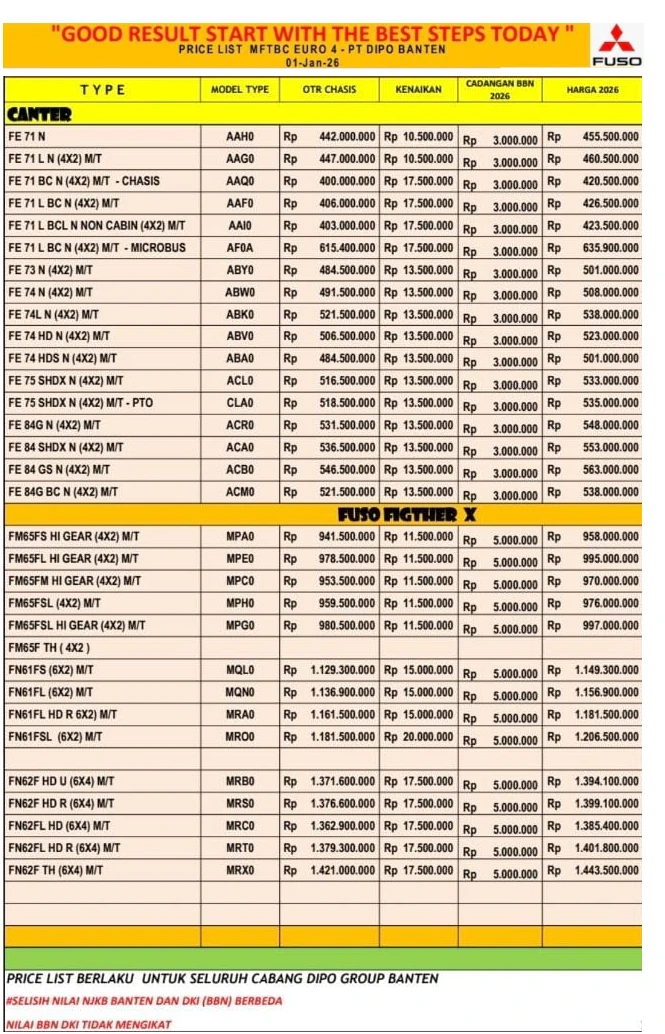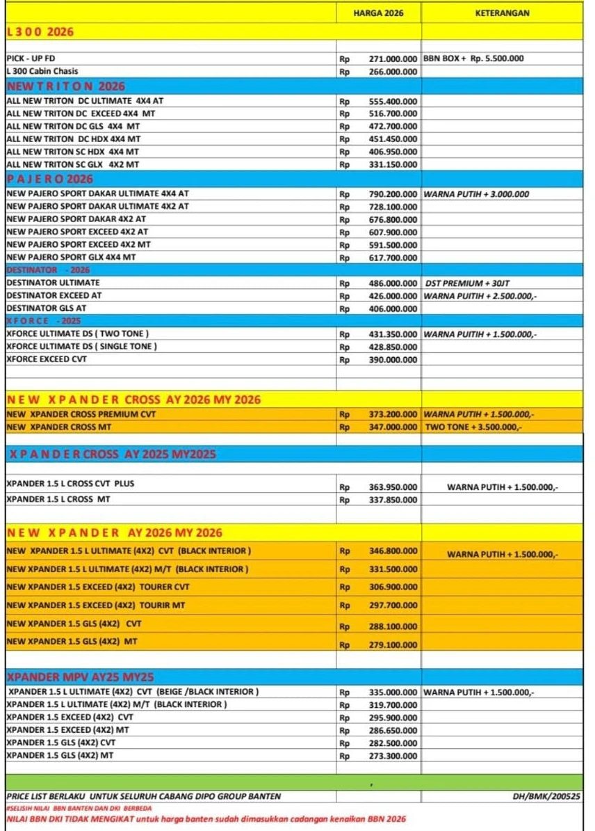 Harga Kendaraan Mitsubishi Wilayah Banten 2026